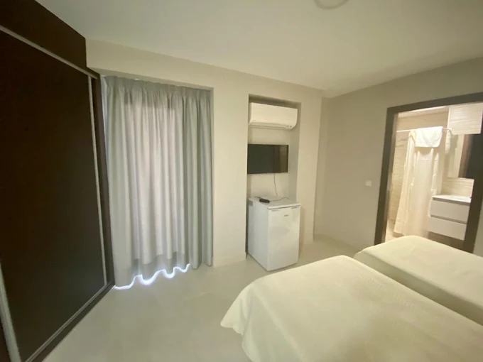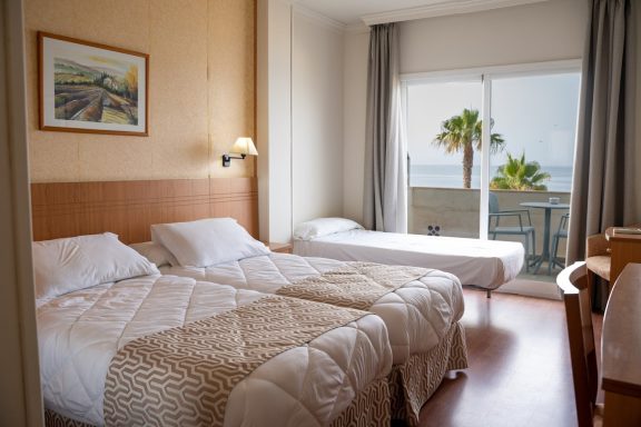 We have single, double, and shared rooms with wifi, air conditioning, and TV, with an en-suite bathroom, terrace, restaurant, cafe, and mountain and beach views, as well as rooms for large events and ceremonies.