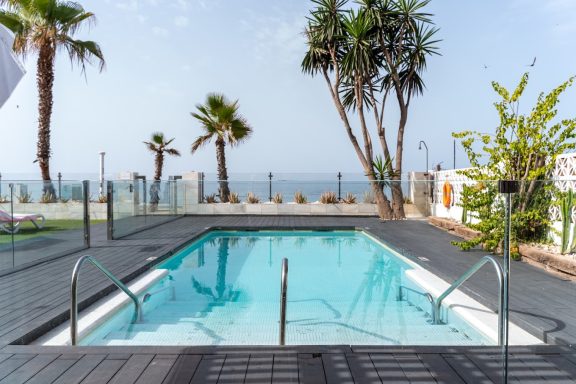 Located on the beachfront, it offers fantastic views of the Mediterranean Sea. You can enjoy incredible sea or mountain views from your private balcony, as well as sunbathe in your garden.